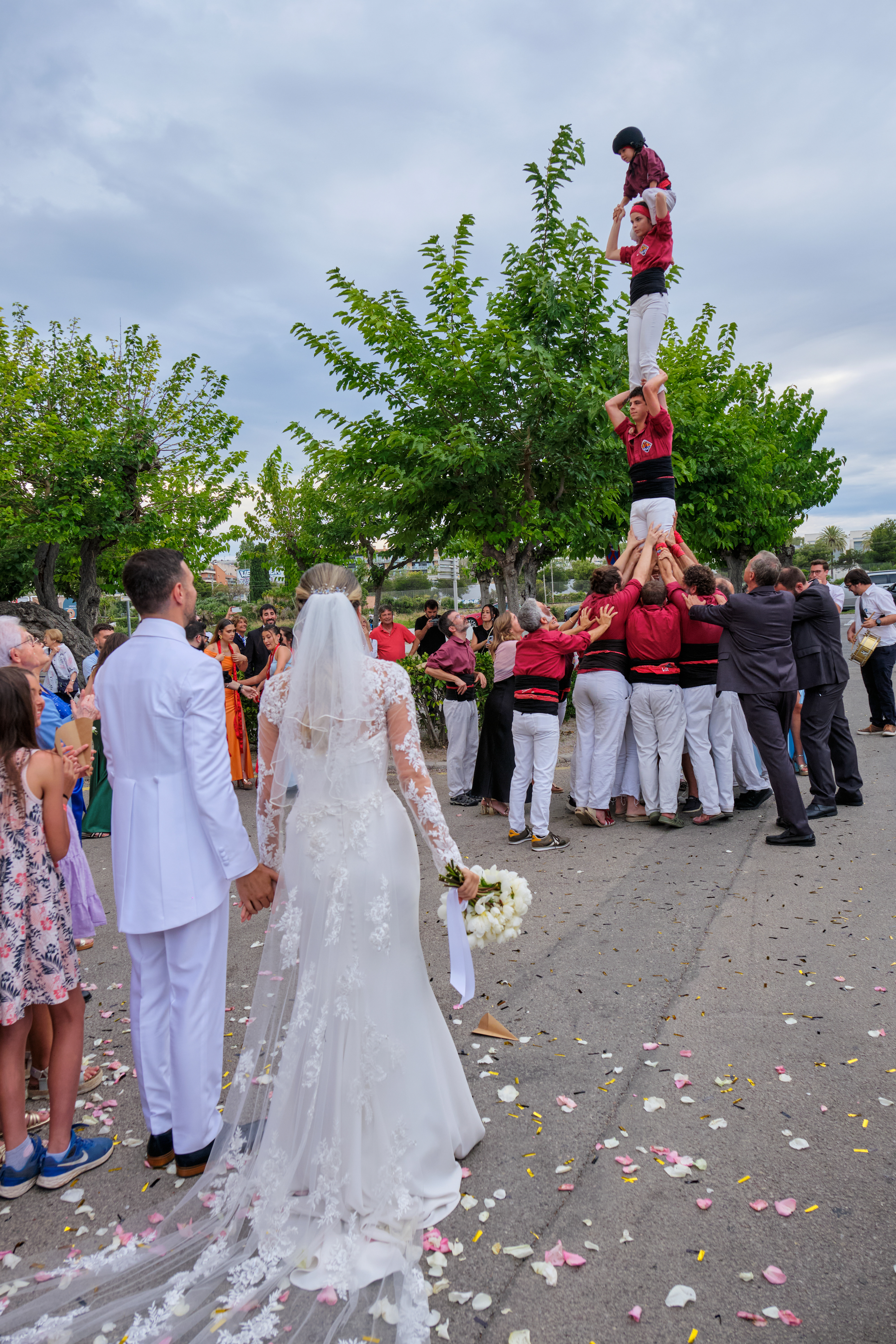 Al so de les gralles – un instrument molt representatiu de les festes del poble i al qual Marc està especialment vinculat com a graller – les companyes d’Eva, també convidades, l’esperaven per fer el ball de cintes, un ball popular que es veu a la processó de la Festa Major. Eva s’hi va unir, ballant amb les seves companyes en una coreografia plena de tradició. Tot seguit, el grup de castellers de Sitges va realitzar una preciosa formació, en una mostra més de la cultura del poble.
